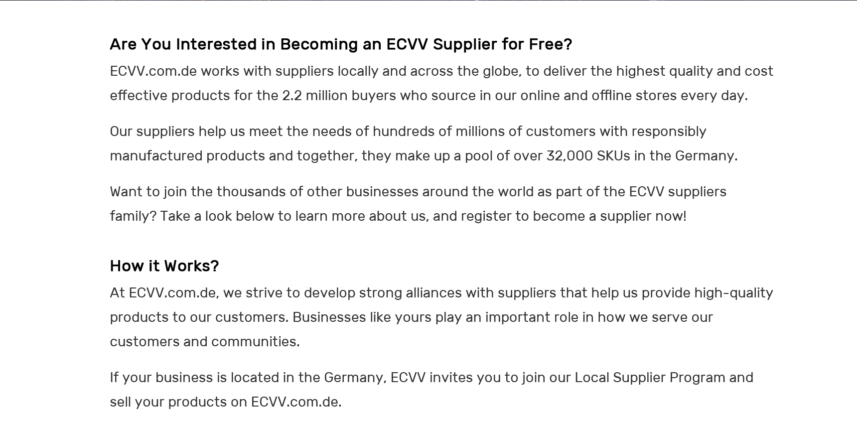 At ECVV.com.de, we take a multi-stakeholder approach to creating value, and we strive to help enable diverse businesses like yours to thrive by identifying opportunities for you to grow with us.