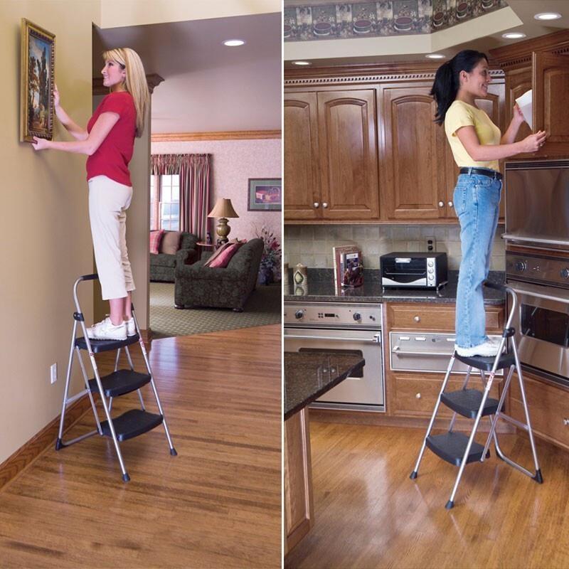1.18m Iron Three-step Ladder, Climbing Ladder, Multi-function Shelf Ladder, Bearing Capacity 102kg