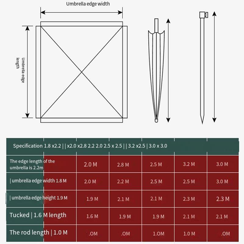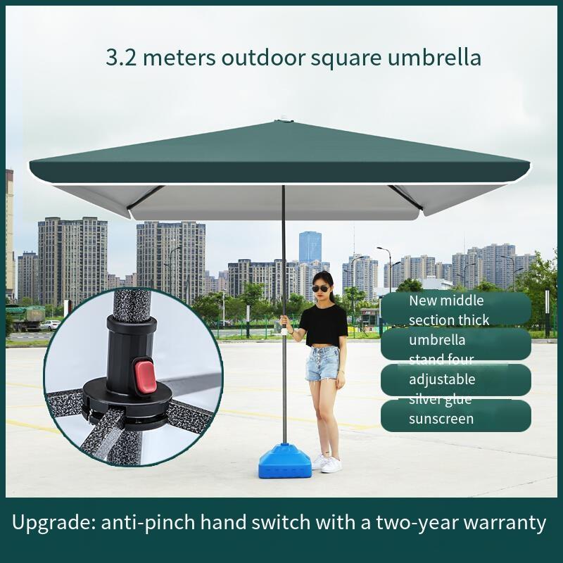 Sun Umbrella Outdoor Stall Sunshade Large Commercial Courtyard Business Super Large Square Rectangle Red 2.0 * 2.0 (with Base)