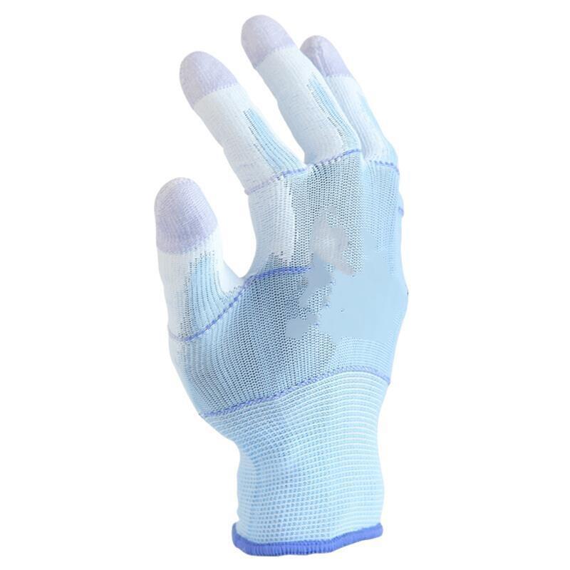 12 Pairs Of Free Size PU Palm Coated Blue Safety Gloves Construction Protective Gloves