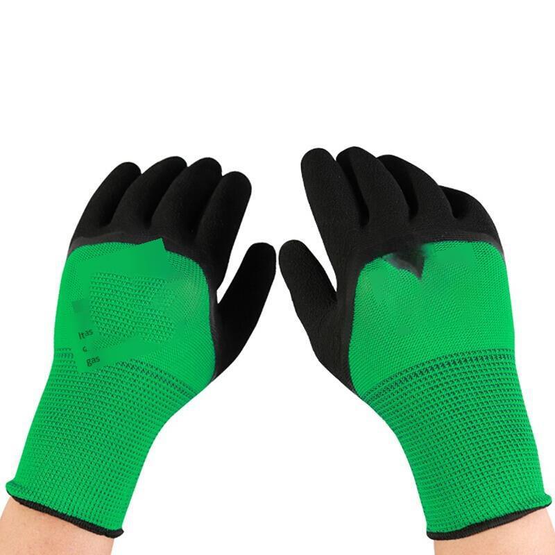 12 Pairs Of Green Nitrile PU Free Size Labor Safety Gloves Foam Latex Gloves Skid Resistant Breathable Construction Protective Gloves