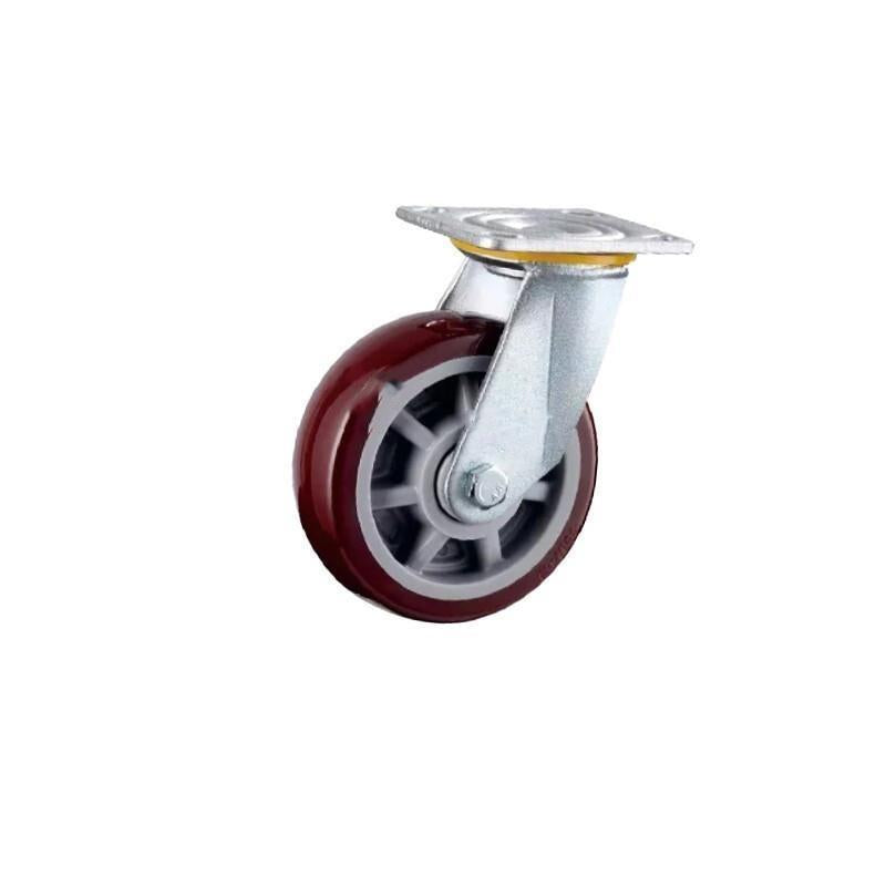 4 Sets 4 Inch Flat Bottom Movable Caster Heavy Duty Jujube Red Polyurethane Caster Universal Wheel