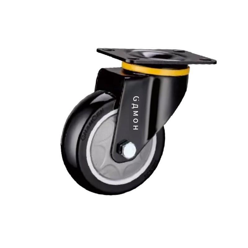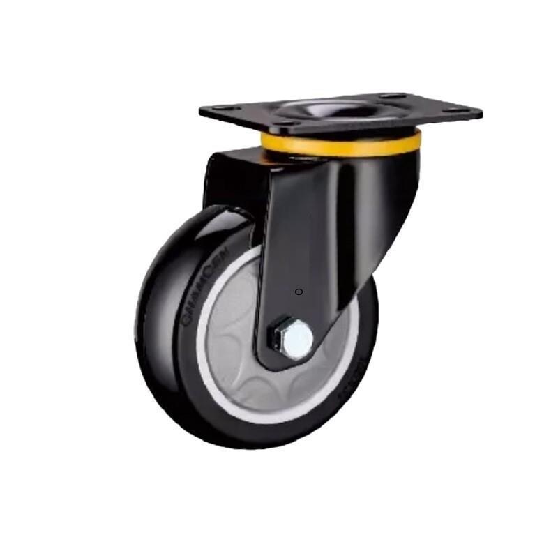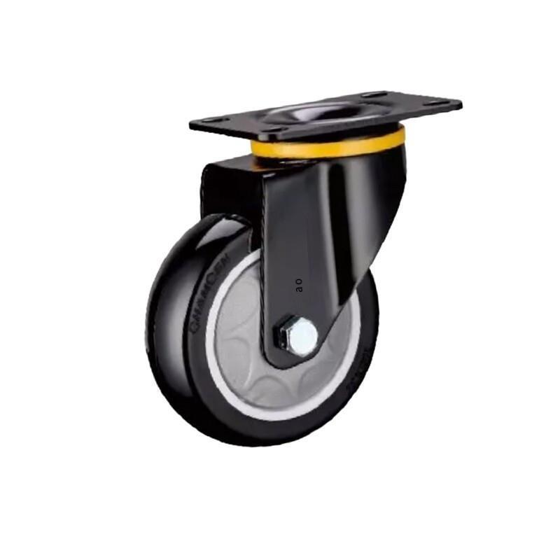 4 Inch Plate Swivel Movable Black Casters 4pcs Pack Polyurethane (PU) Casters with Precision Single Ball Bearing Medium Heavy Universal Wheels - 4pcs