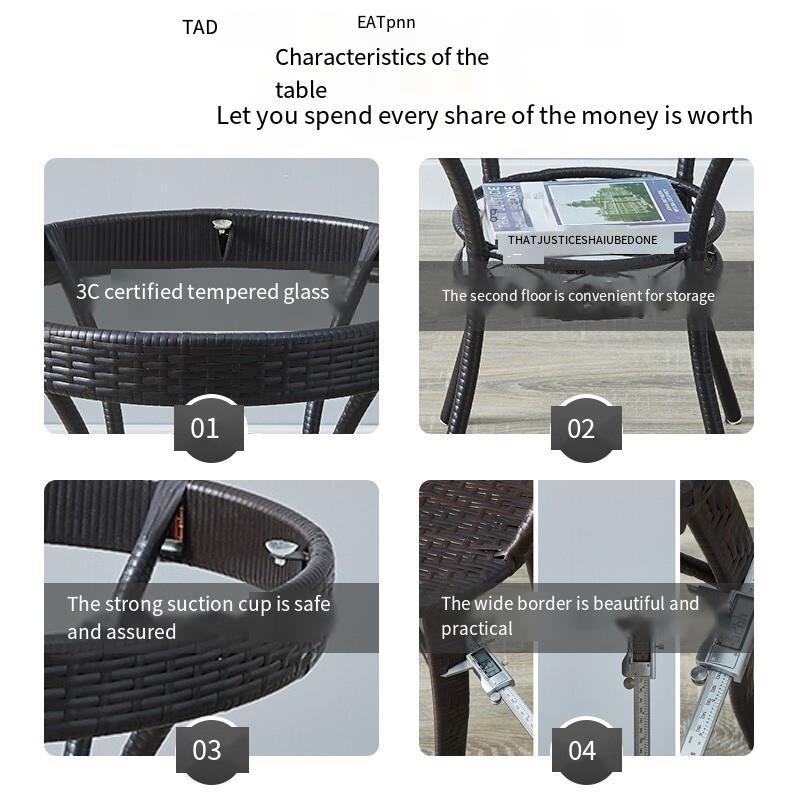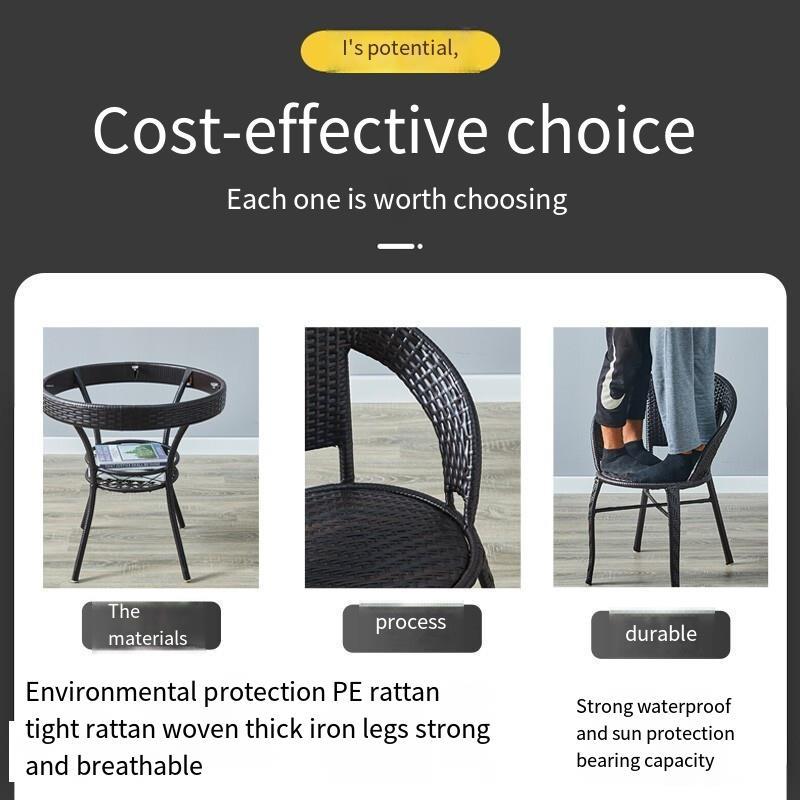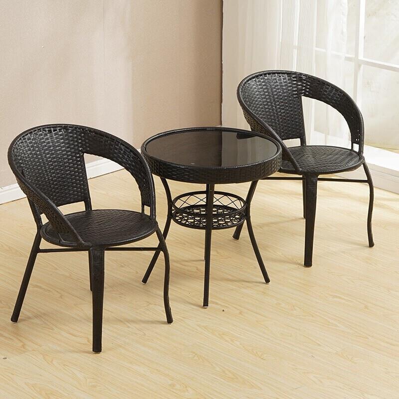 58cm Rattan Chair Three Piece Set Outdoor Balcony Table Chair Small Tea Table Combination Outdoor Courtyard Living Room Furniture