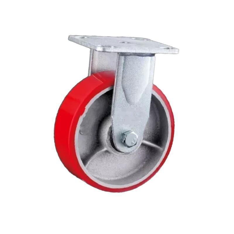 8 Pieces/Box 8 Inch Fixed Heavy Duty Casters Plane Iron Core Red Polyurethane Caster Directional Wheel