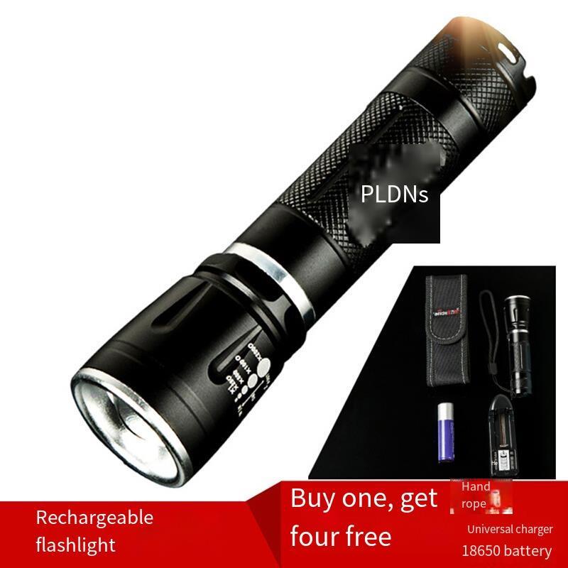 Aluminum Alloy Strong Light Flashlight Led Charging Telescopic Focusing Flashlight 3w Multifunctional Lighting Black