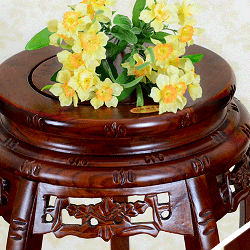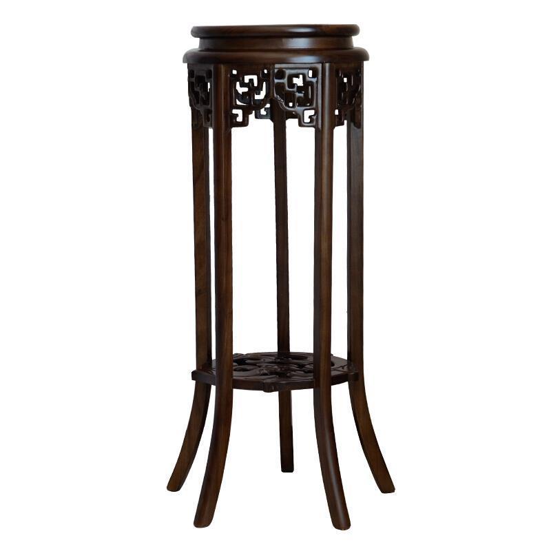 Antique Solid Wood Green Rose Flower Rack Classical Flower Pot Rack Living Room Study Balcony Old Elm Multi-layer Quality Ming And Qing Chinese Living Room Flower Table Black Walnut Color Surface 30 High 90