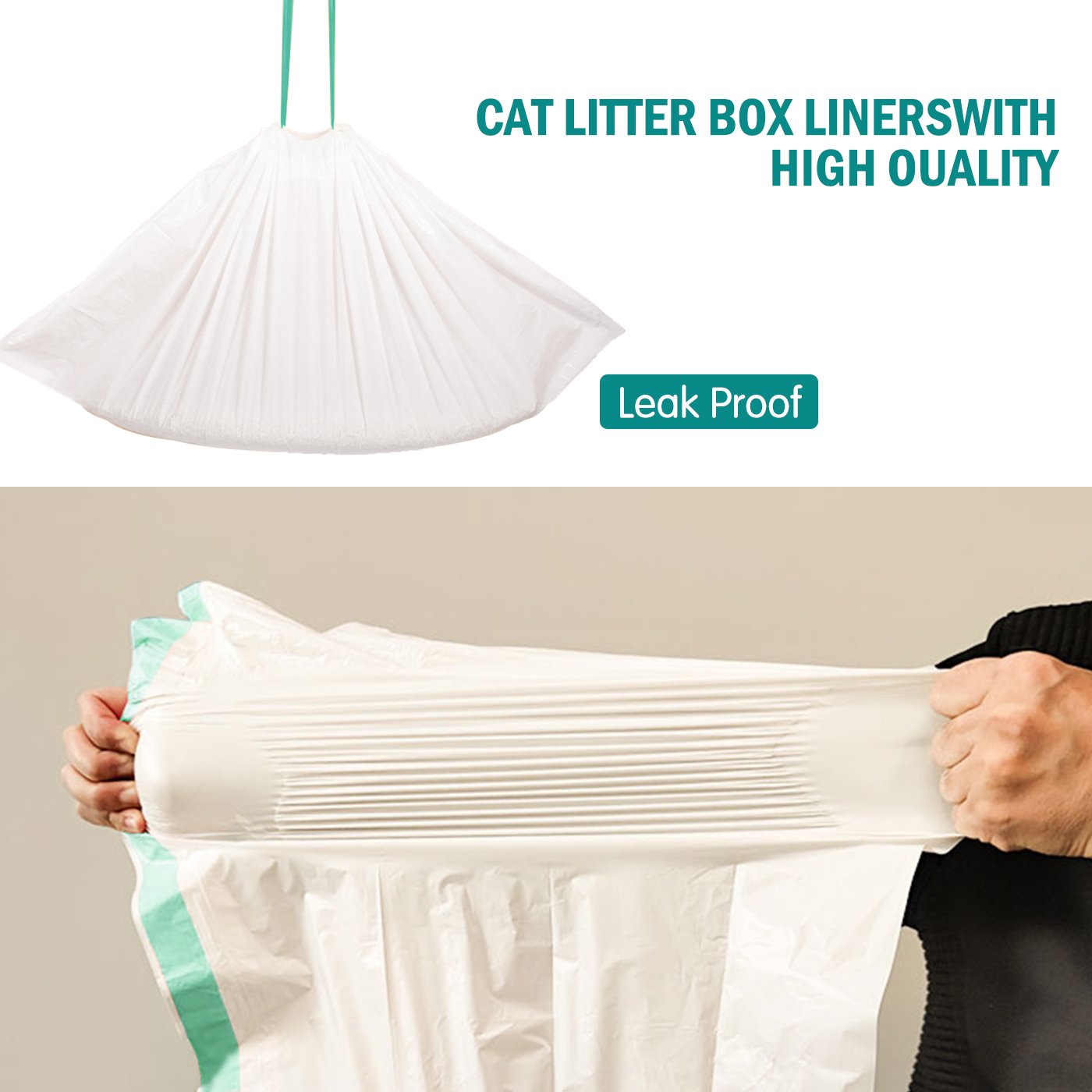 Drawstring Design: With the convenient drawstring handles, the cleaning of the litter box is no longer a troublesome problem for the owner. Just tighten the rope and lift it up, then put on a new one. It's time-saving and hygienic. We are committed to bringing you a relaxed life!