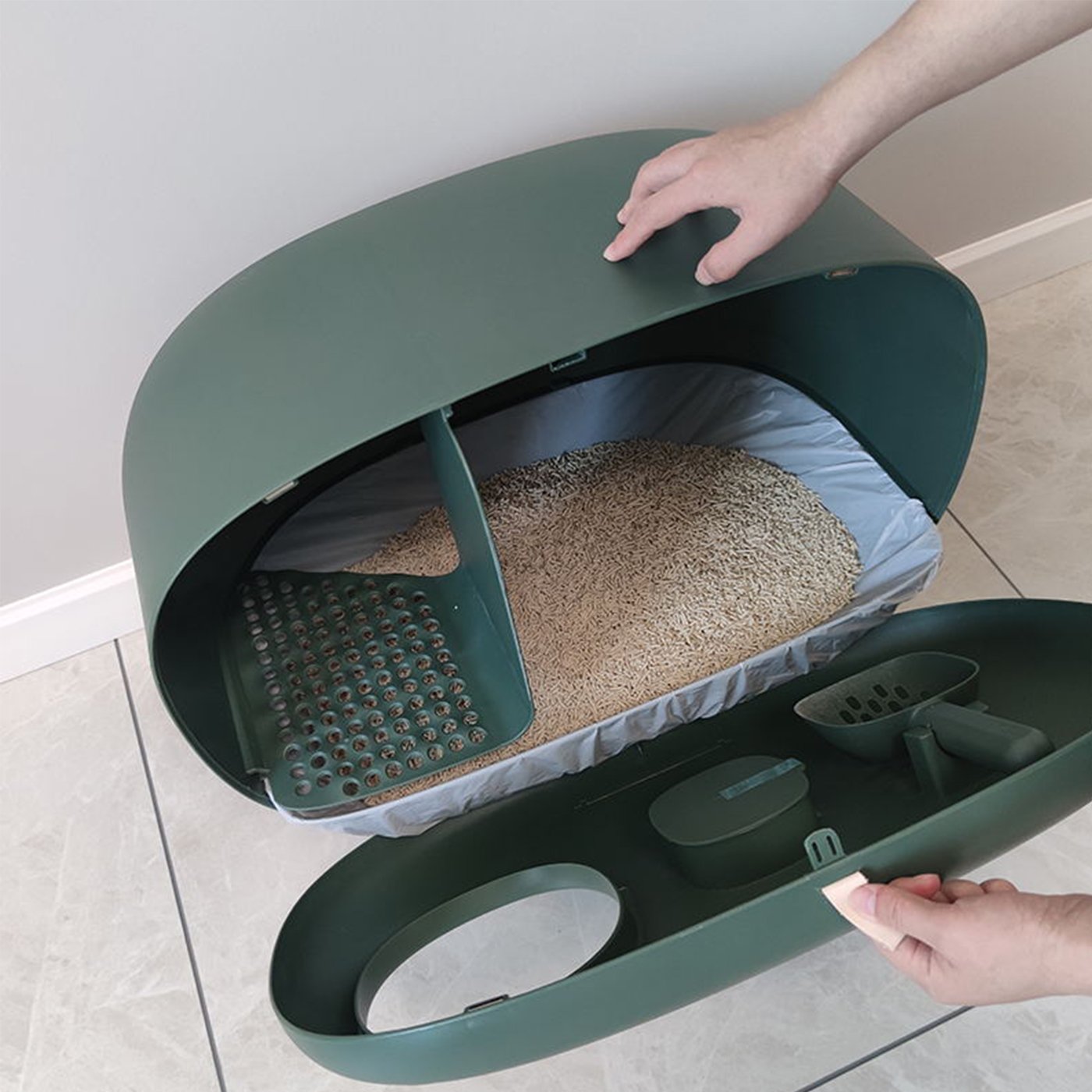 【Drawstring Design】With the convenient handle, just grab the drawstring and lift it when ready for changing. Easily clean your litter box, eliminating troublesome cleaning steps. Essential supplies for lazy and busy people.