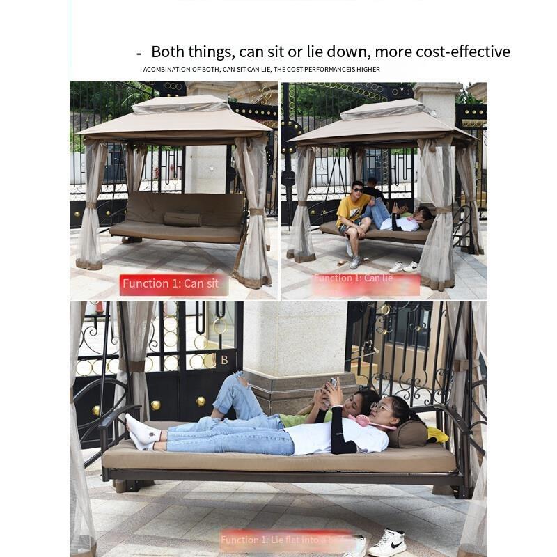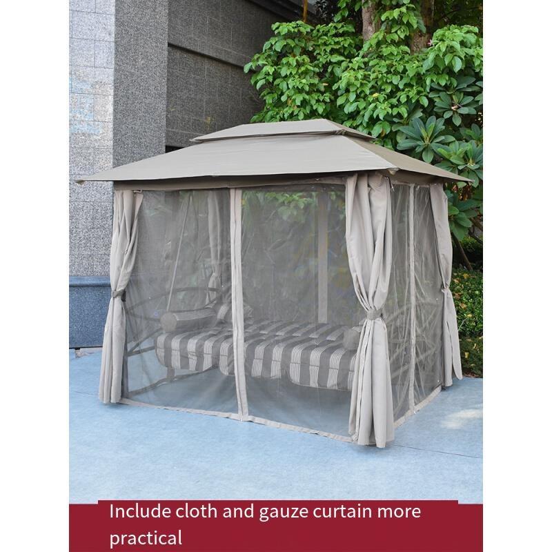 Balcony Hanging Chair Reclining Outdoor Swing Tent Rocking Iron Hammock Indoor Balcony Reclining Chair Villa Courtyard Outdoor Rocking Bed Courtyard Khaki - Can Seat And Lie [+ Gauze Curtain]