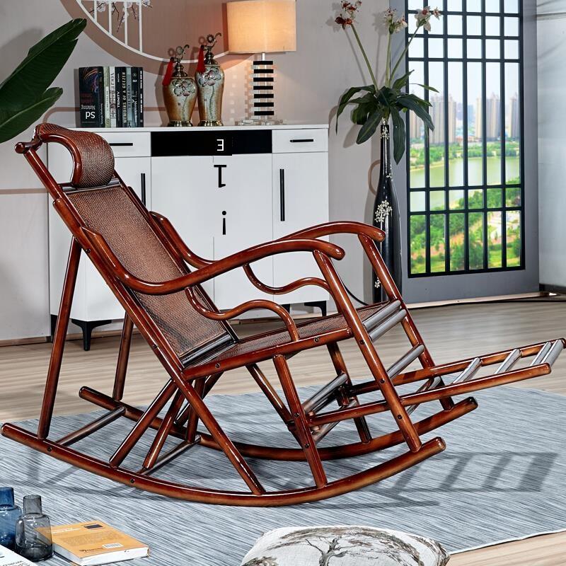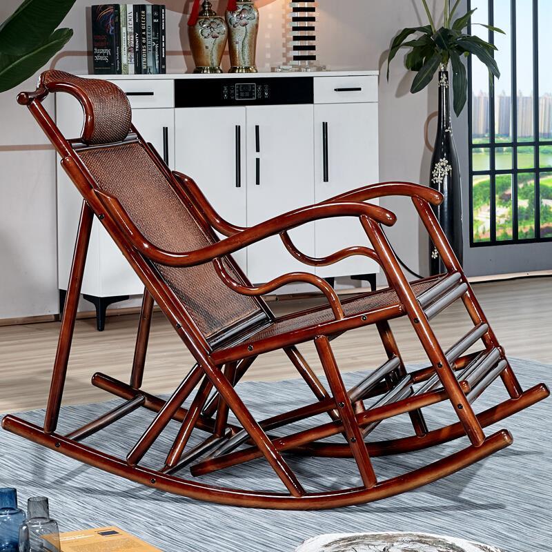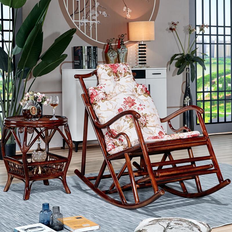 Balcony Leisure Solid Wood Real Rattan Weaving Rocking Chair Sofa Household Adult Back Reclining Chair Single Casual Chair Single Rocking Chair