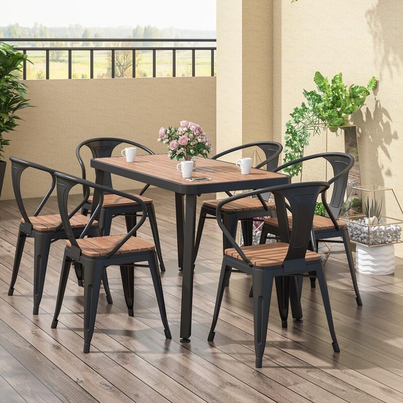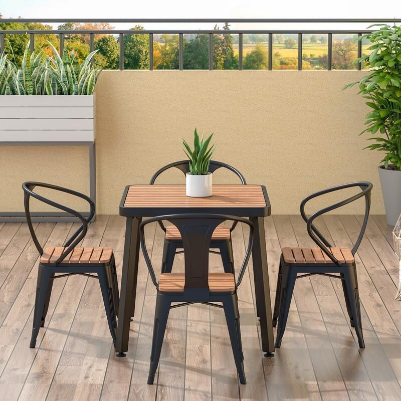 Balcony Outdoor Table And Chair Combination Outdoor Furniture Iron Table Simple Courtyard Terrace Garden Table And Chair Leisure Black Square Table