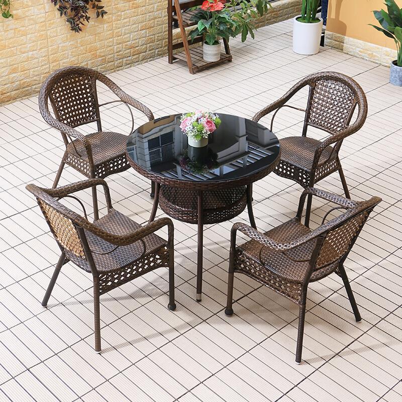 Balcony Small Table And Chair Outdoor Courtyard Rattan Chair Three Piece Set Garden Terrace Rattan Weaving Simple Leisure Tea Table Combination [with Cushion] 2 Chairs + 60 Transparent Round Table