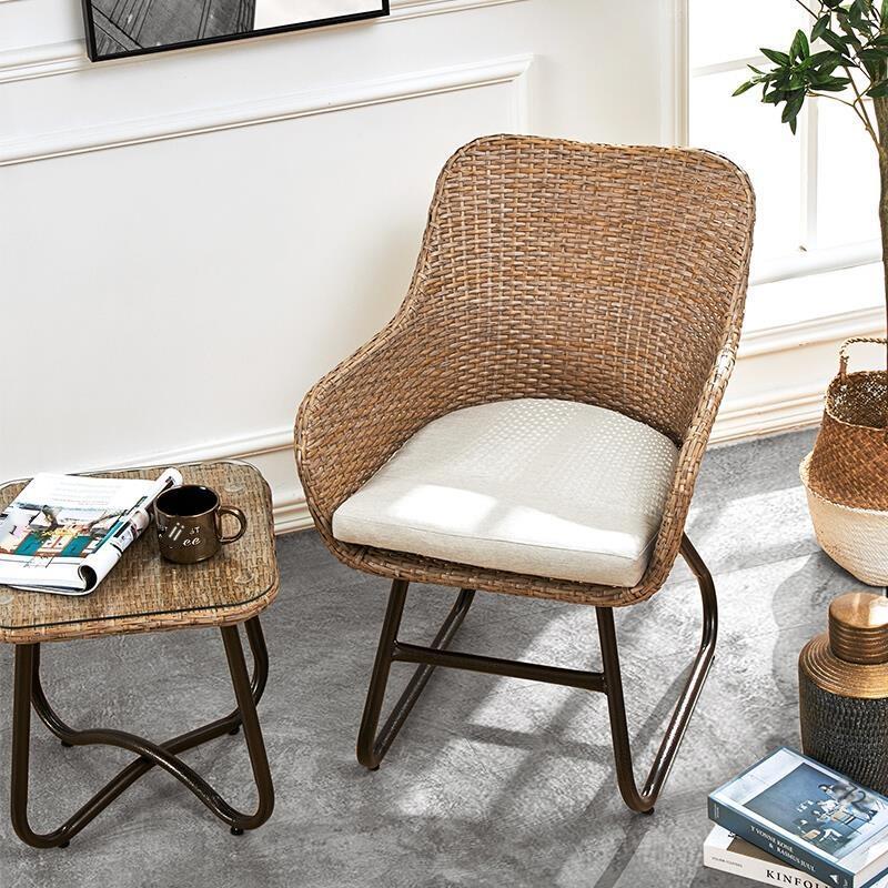 Balcony Small Table And Chair Rattan Three Piece Outdoor Creative Garden Terrace Courtyard Leisure Combination Set Beige 2 + 1 [with Cushion]