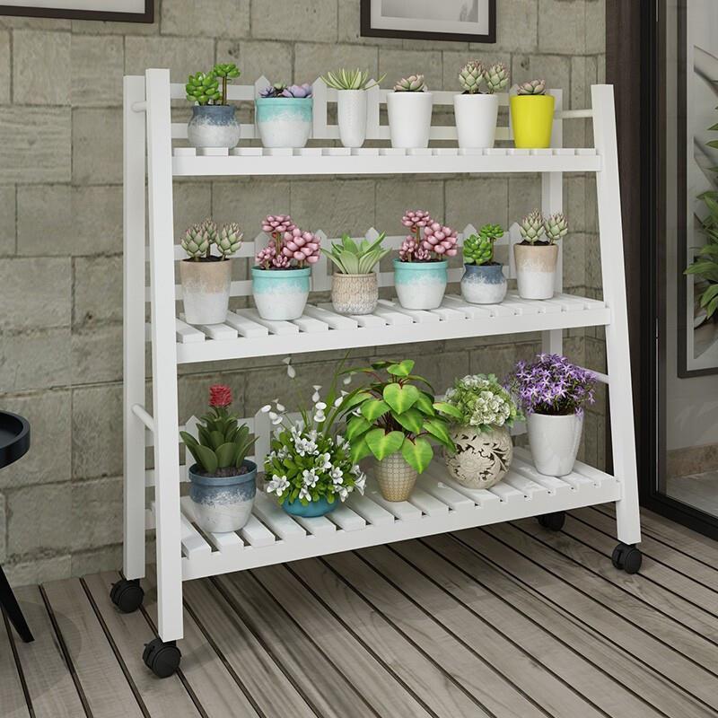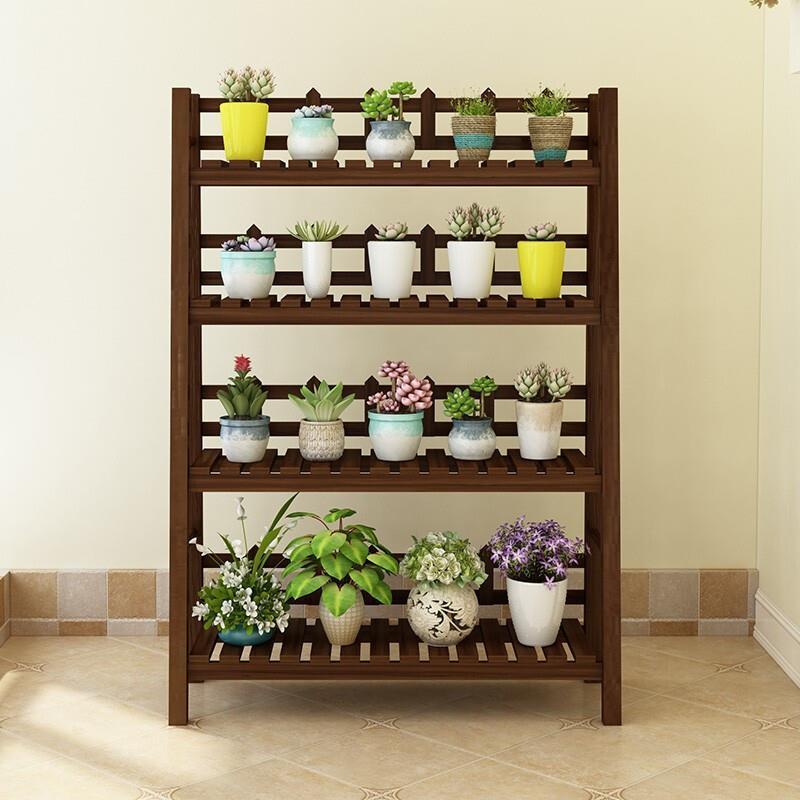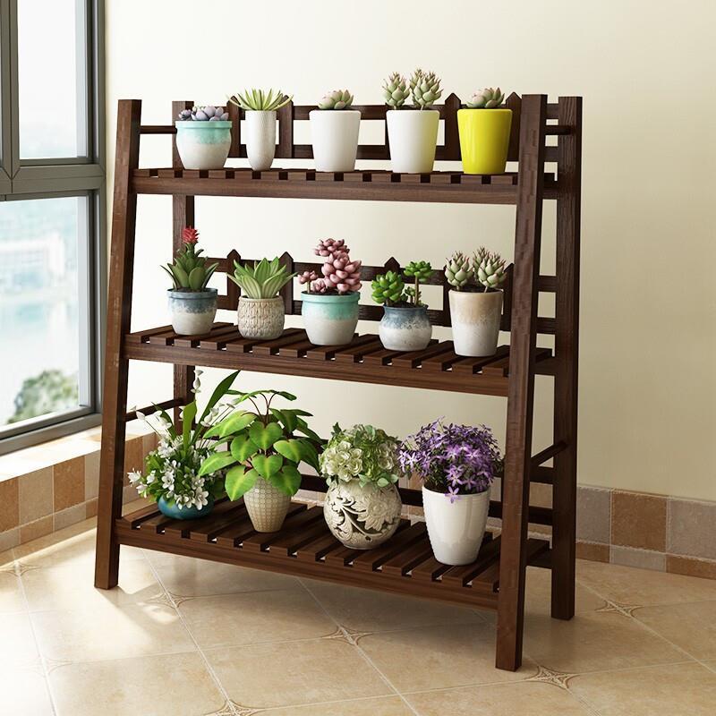 Balcony Solid Wood Multi-storey Living Room Plant Rack Indoor Floor Multi Meat Flower Pot Rack Green Pineapple Anti-corrosion Wood Mobile Flower Rack Multi Fence Carbonization 3 Layers 1m Pulley