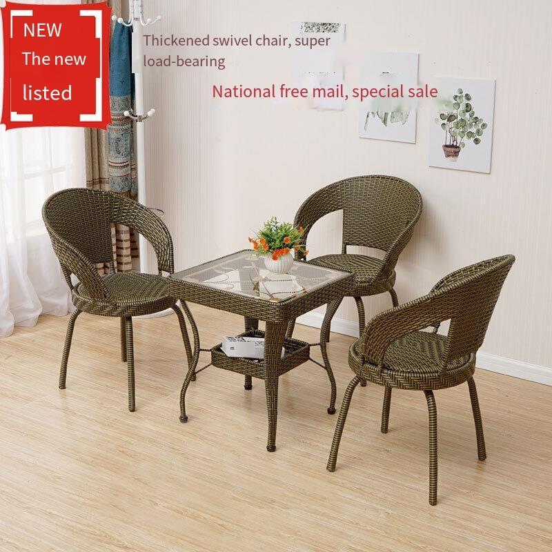 Balcony Table Chair Rattan Chair Three Piece Set Rotatable Chair Small Tea Table Courtyard Leisure Square Table Teng Chair Back Chair Combination