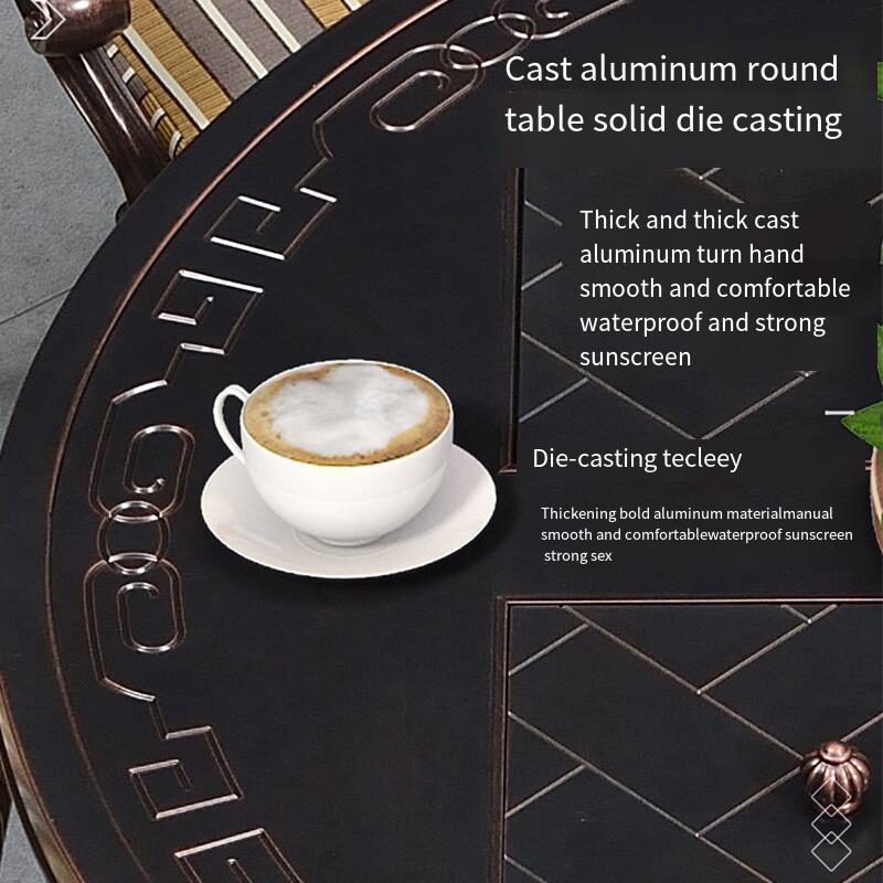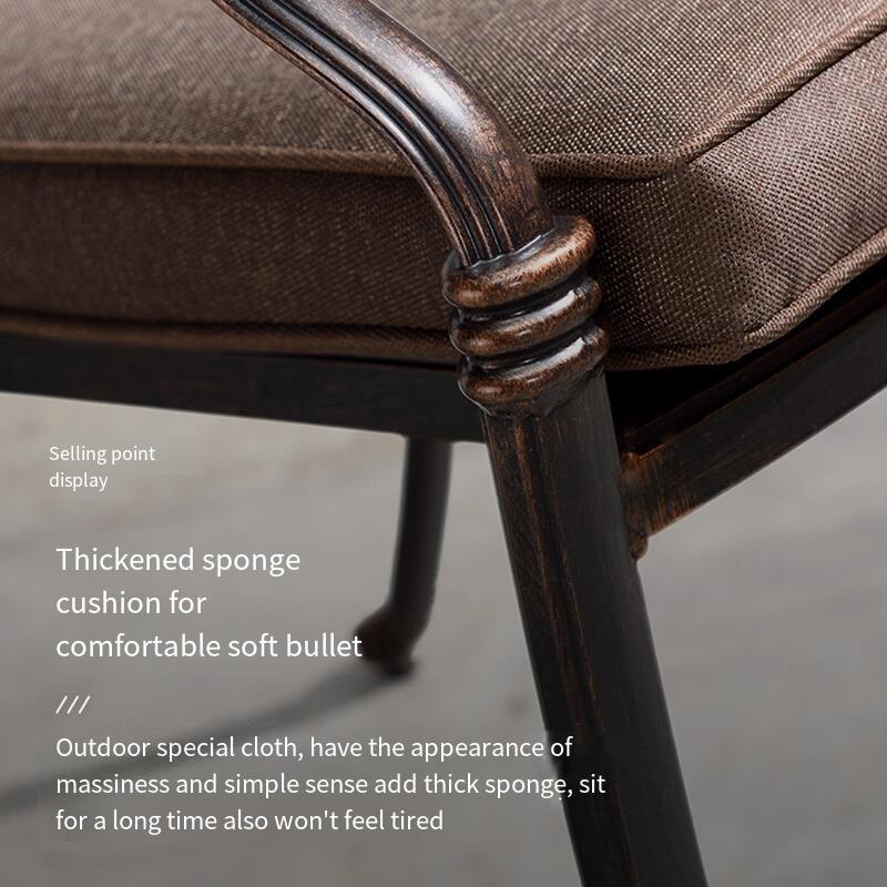 Outdoor Barbecue Table And Chair Five Piece Set Iron Art Furniture Seat 6 Linclined Lattice Chair Cast Aluminum Long Table 146 × 80 With Cushion