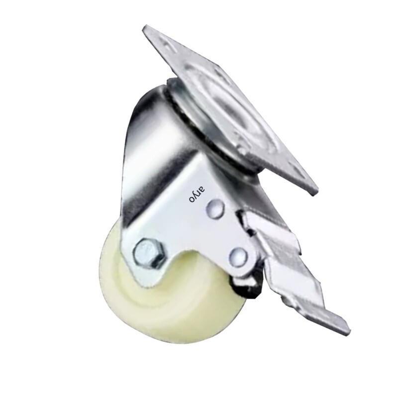 A1-1.5 Inch Flat Bottom Double Brake Beige Polypropylene (PP) Caster 4 Medium Light Universal Wheels / Set