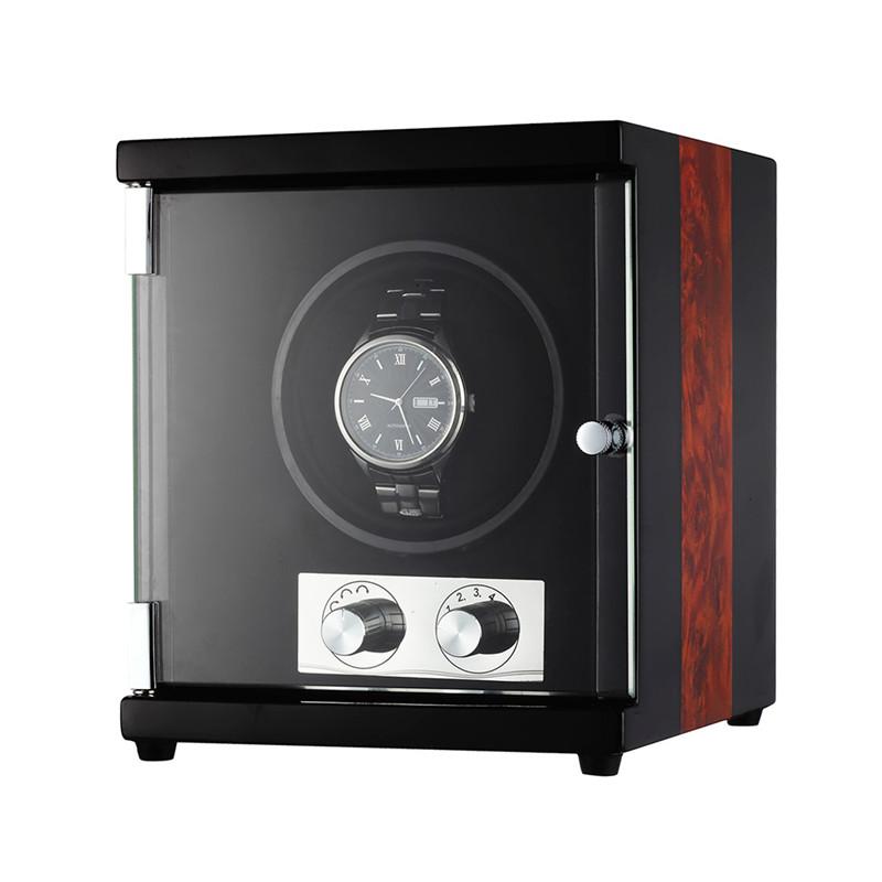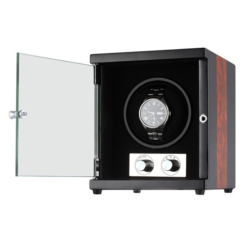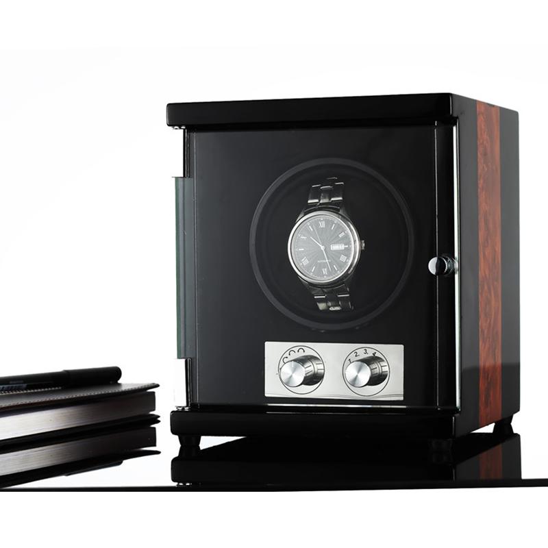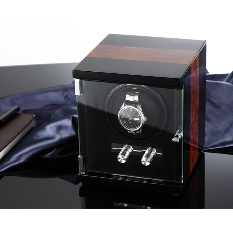 CHIYODA Automatic Single Watch Winder Wooden Watch Box With Glass Cover Quiet Motor - 12 Rotation Mode Setting, Patchwork Patterns