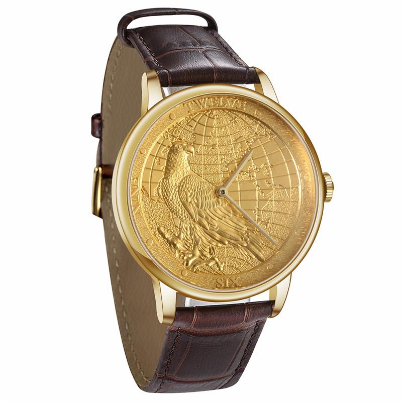1. The Eagle Symbolizes Freedom, Strength, and Victory Perfectly blends superb craftsmanship and delicate ideas, we create a classic coin-like watch dial with a brave eagle standing upon the whole. It expresses a spirit that “to be the eyes of an eagle, to overlooking the world ".