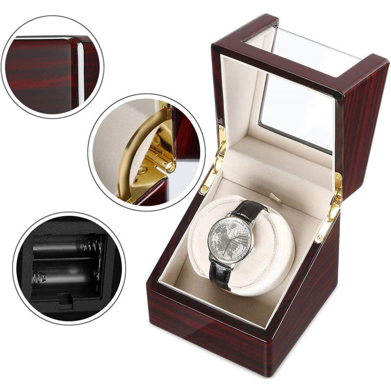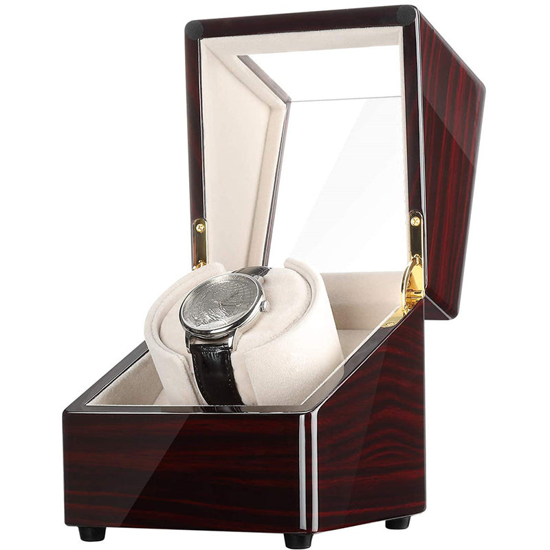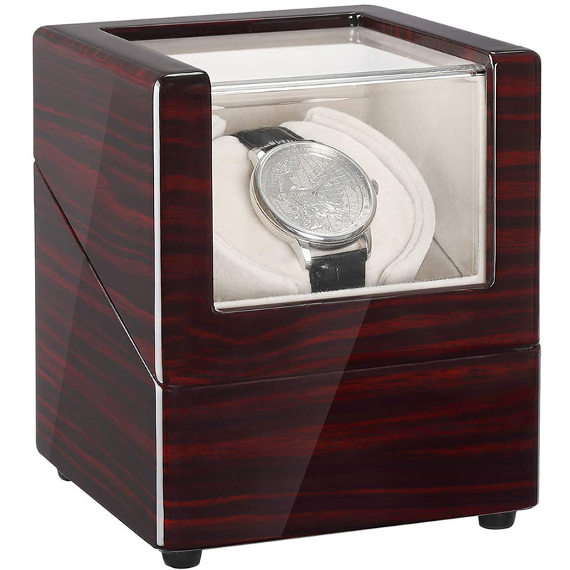 CHIYODA Single Watch Winder Deluxe Piano Baking Varnished Handmade Wooden Watch Box With Quiet Mabuchi Motor And 12 Rotation Modes