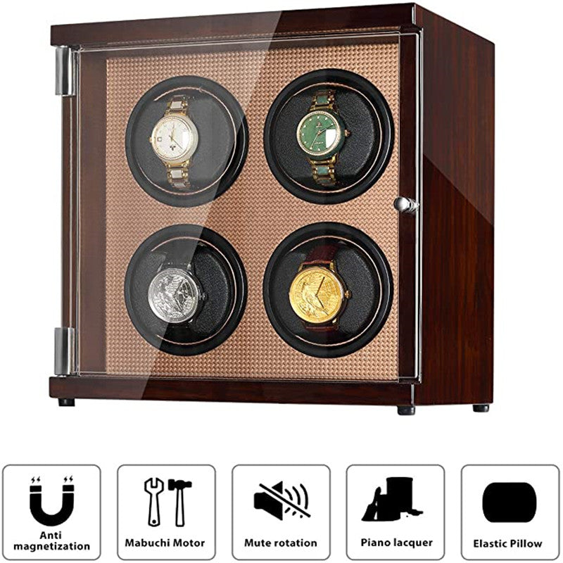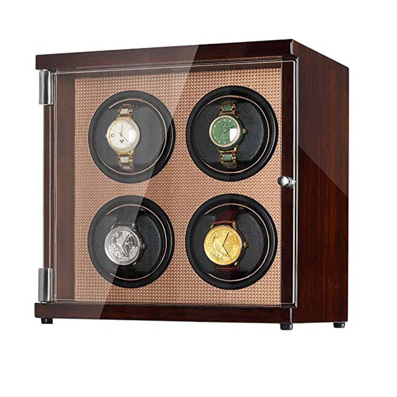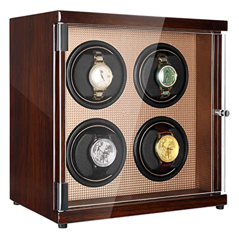 CHIYODA Watch Winder Four Watch Winder For Men's And Women's Automatic Watch With Quad Mabuchi Motor, LCD Digital Display And High Gloss Brown