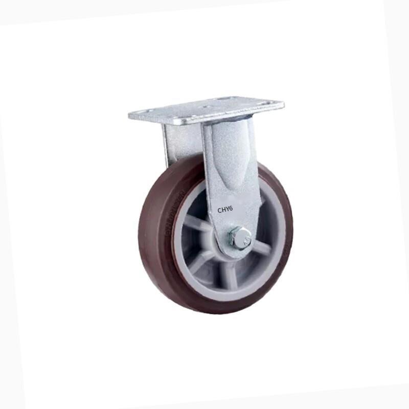 C13-6 Inch Fixed Coffee Color Synthetic Rubber (TPR) Caster Heavy Directional Wheel 4 Sets / Set