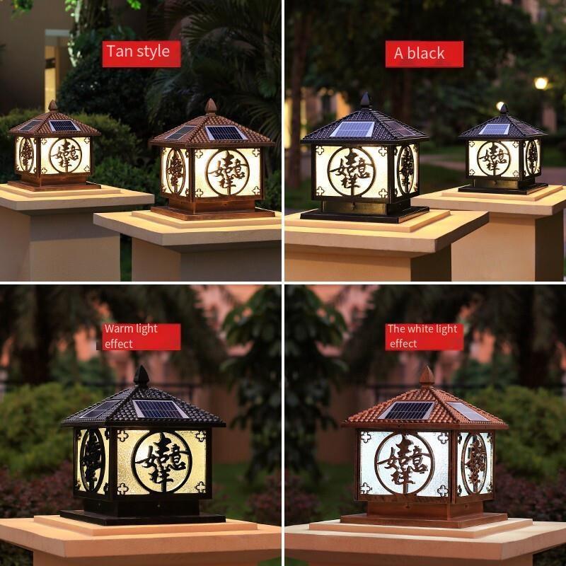 Column Head Lamp Outdoor Waterproof Villa Gate Column Chinese Antique Solar LED Outdoor Courtyard Wall Lamp