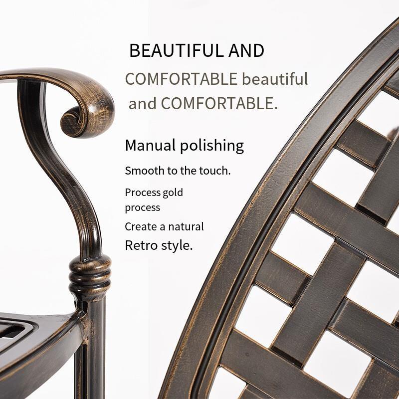 Beautiful and comfortable. Solid cast aluminum, one-piece molding, will not be afraid of wind and sun, and will never rust.