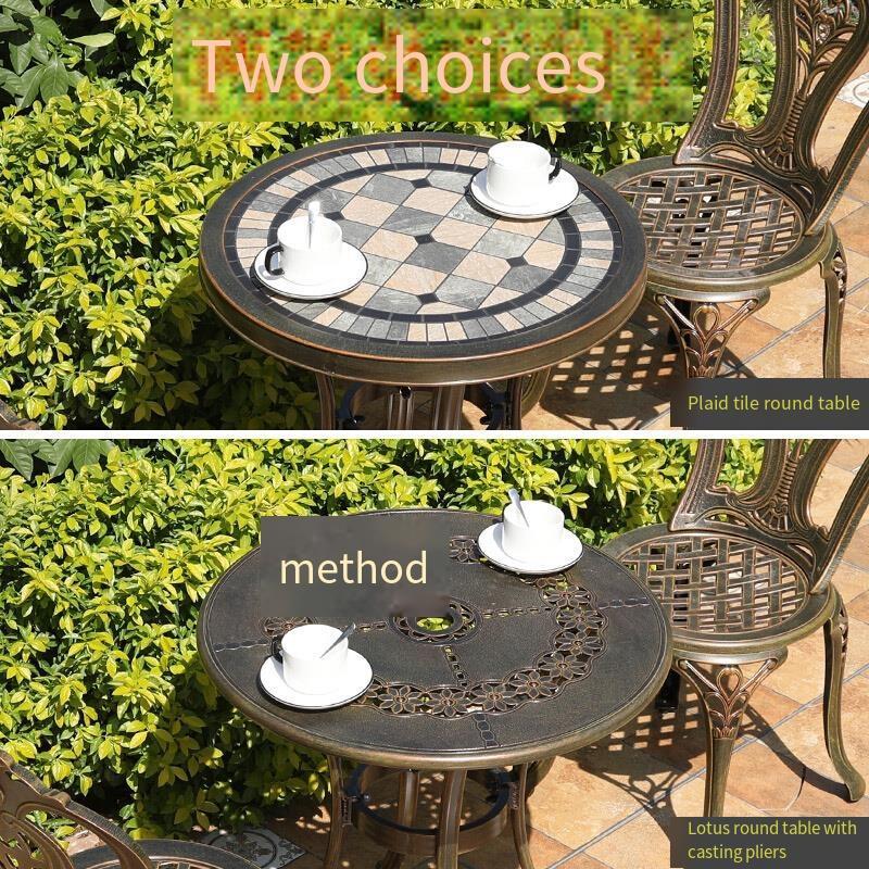 Creative Leisure Chair Small Tea Table Chair Furniture Outdoor Balcony Table Chair Combination 2 + 1 With 60cm Cast Aluminum Tile Lattice Round Table