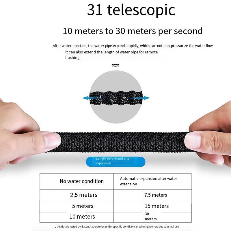 Double High Pressure Car Washing Water Gun Pressurization Nozzle Magic Telescopic Soft Pipe All Metal Household Car Washing Artifact Can Be Used For Garden Watering Multifunctional 10m Telescopic Water Pipe [water Injection 30m]
