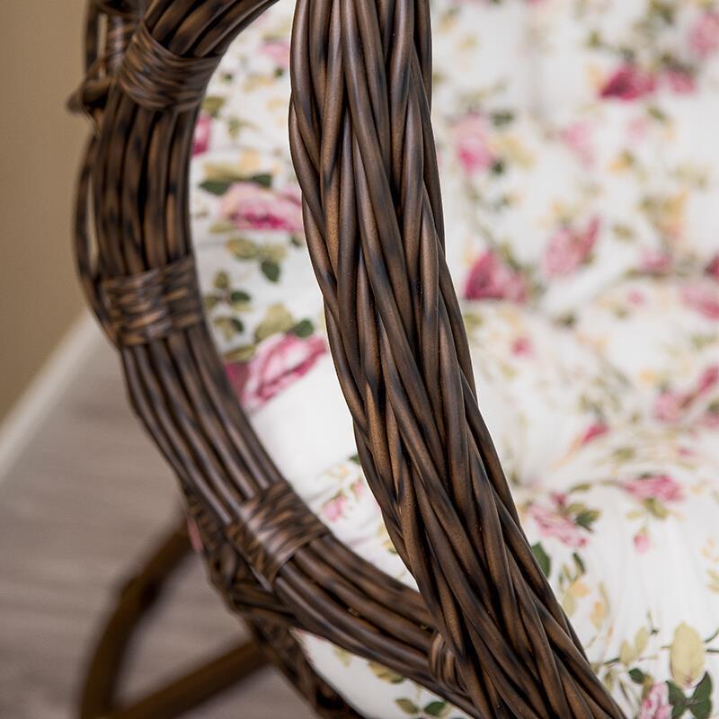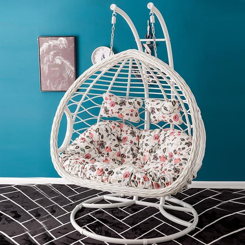 Hanging Basket Rattan Chair Double Pole Indoor Swing Hammock Hanging Basket Chair Balcony Cradle Chair Upgrade Wood Grain Color With Carpet Cushion