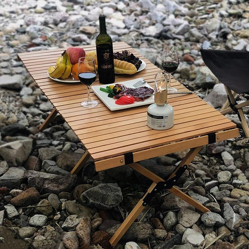 Egg Roll Table Solid Wood Outdoor Folding Table Chair Self Driving Camping Portable Solid Wood Picnic Table Set 120cm Egg Roll Table