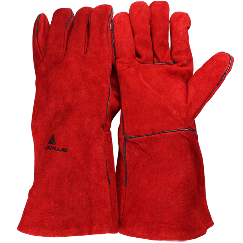 One Pair Electric Welding Gloves Heat Insulation And Wear Resistance Cow Leather Welding High Temperature Resistance Thickening Lengthened Industrial Labor Protection Gloves Red L