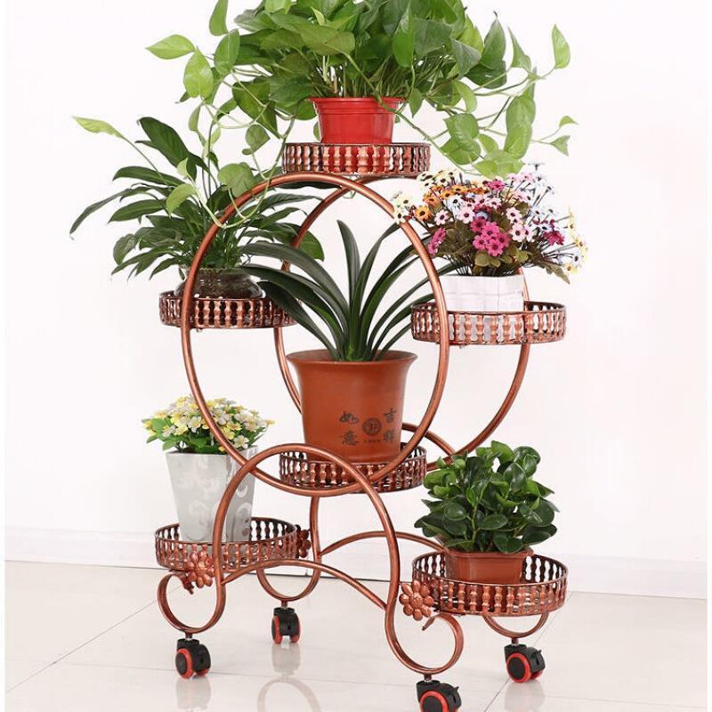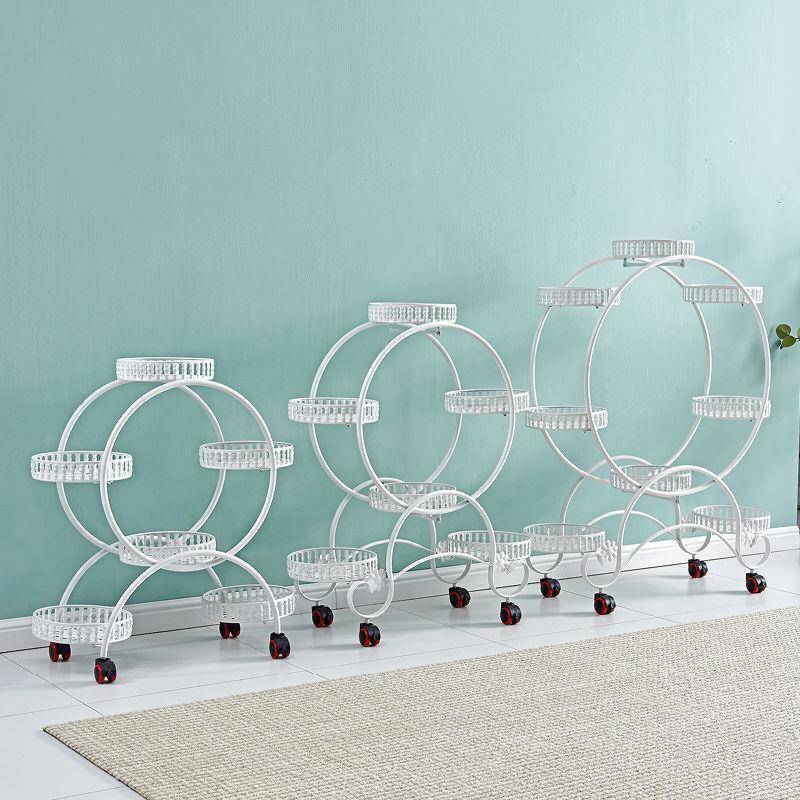 European Style Flower Rack Living Room Balcony Movable Push-pull Belt Wheel Floor Type Flower Pot Rack Lvluo Multi-layer Iron White Six Pots Plus Large 92cm High Brake Wheel [with Tray] Default 1