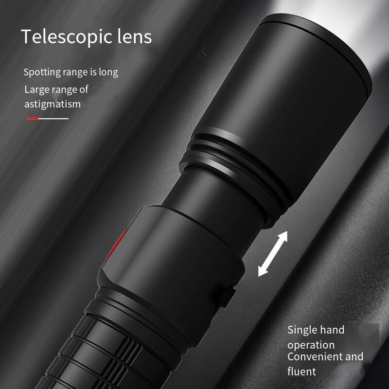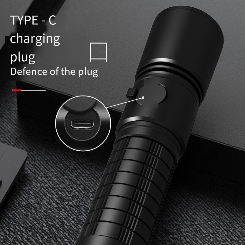 Flashlight 15w Strong Light Aluminum Alloy Super Bright Tpye-C Power Display (Including Battery + Charger)