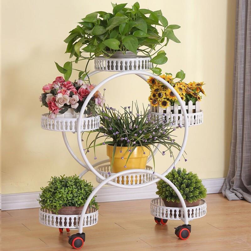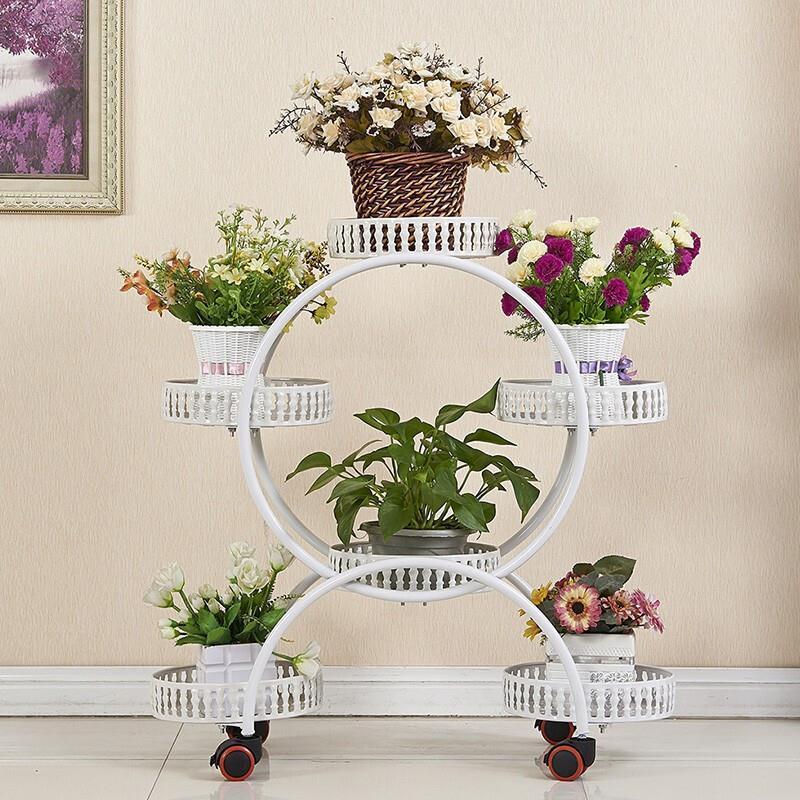 Flower Rack European Iron Six Storey Movable Push-pull Floor Type Flower Pot Rack Living Room Balcony Pulley H1j5 White Luxury Model With Brake Caster