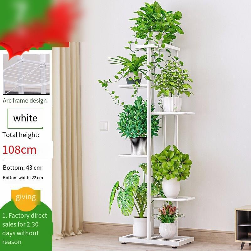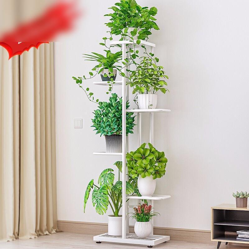 Flower Rack Multi-storey Indoor Household Balcony Decoration Storage Layer Rack Iron Art Living Room Nordic Simple Hanger Green Rose Rack White (7 Potted Flowers Can Be Put)