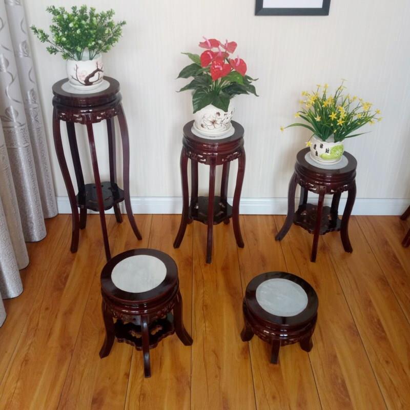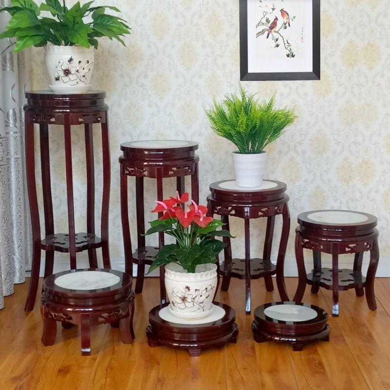 Flower Rack Solid Wood Living Room Chinese Style Single Green Pineapple Landing Indoor Fish Tank Flower Rack For Flower Pot Domestic Wooden Short J-face, Diameter 30cm, Height 43cm