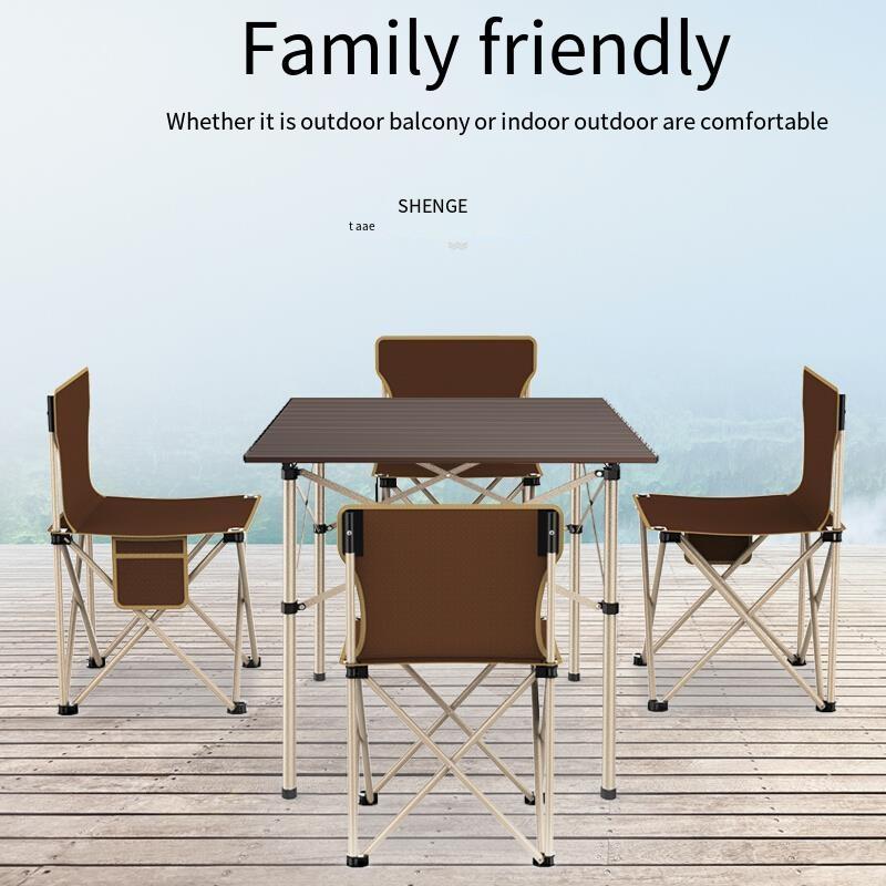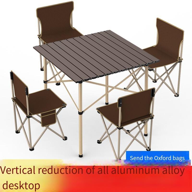 Outdoor Folding Table Folding Picnic Table Portable Aluminum Alloy Square Table Ultra Light Suit Self Driving Touring Table 4 Large Back Chairs