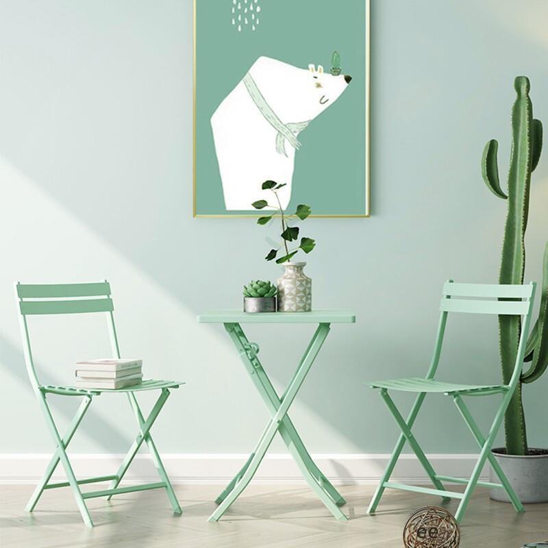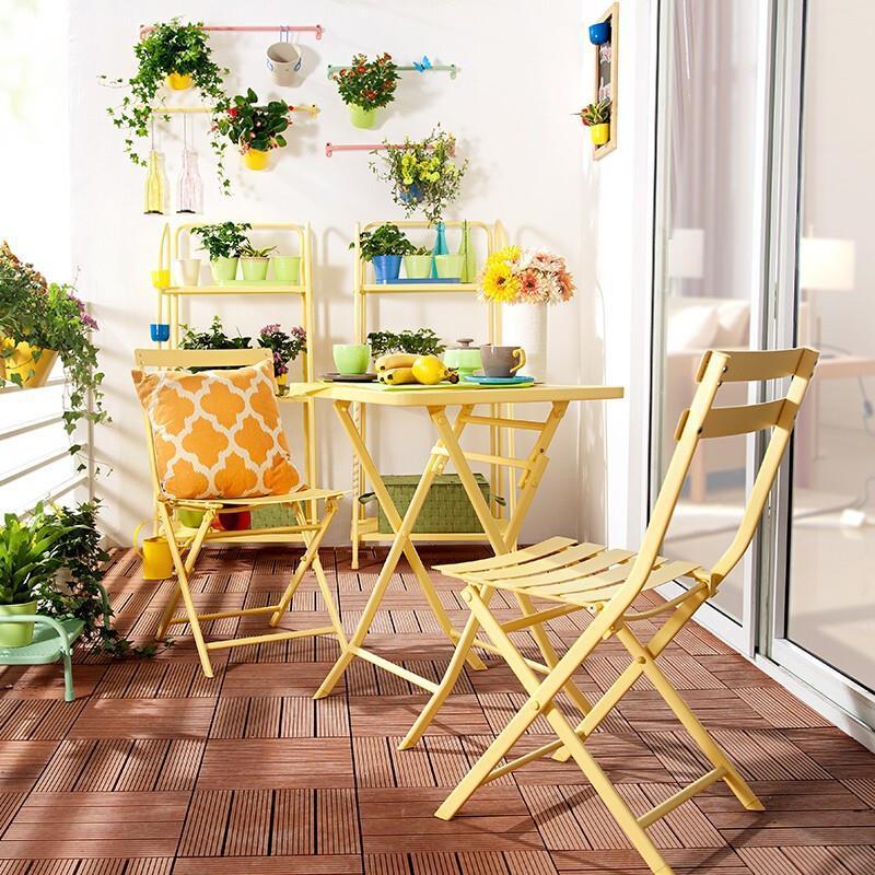 Yellow Folding Table And Chair Portable Three Piece Set Indoor Balcony Household Stool Nordic Leisure Modern Simple Tea Table Combination Outdoor Iron