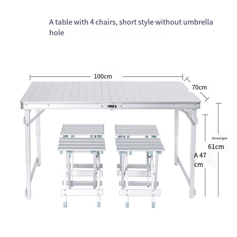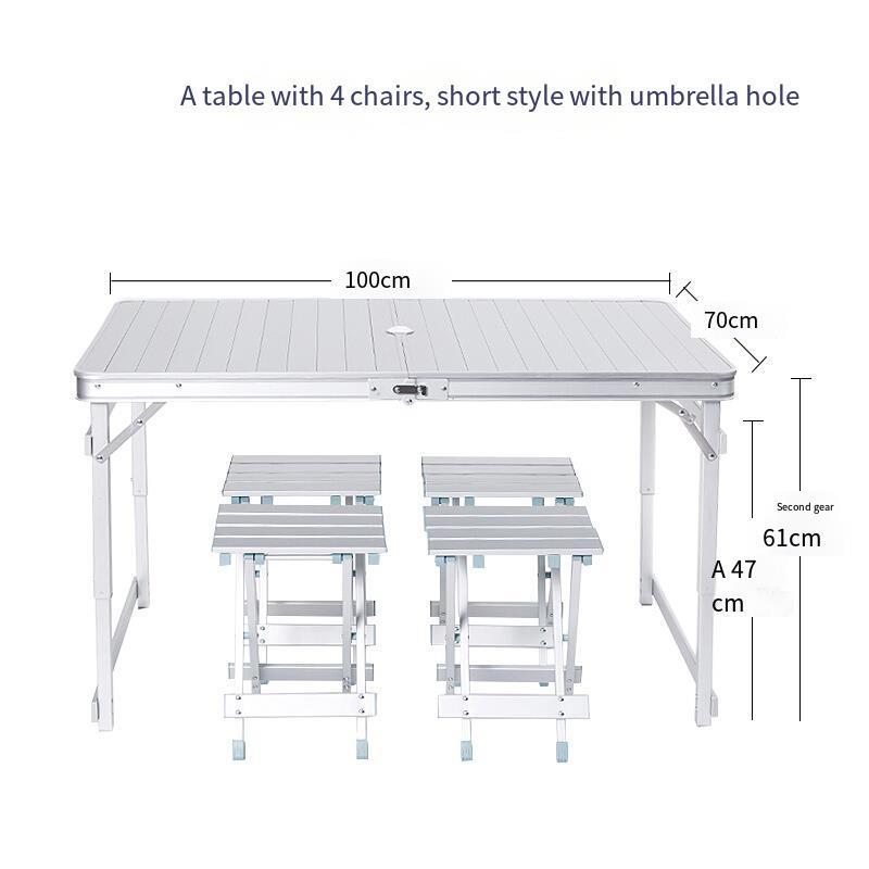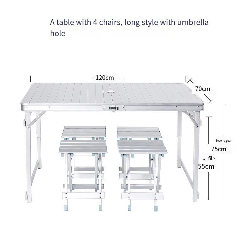 Folding Table Outdoor Portable Table And Chair Combination Set Simple All Aluminum Alloy Stool Villa Dining Table Outdoor Barbecue Table Stall Exhibition Umbrella Hole 1 Table 4 Chairs (long)