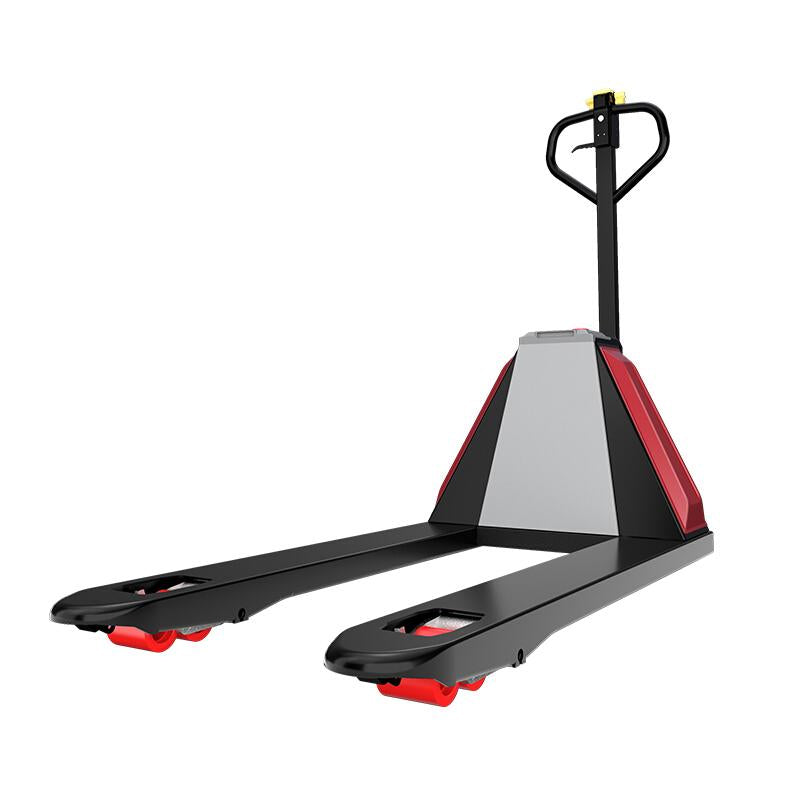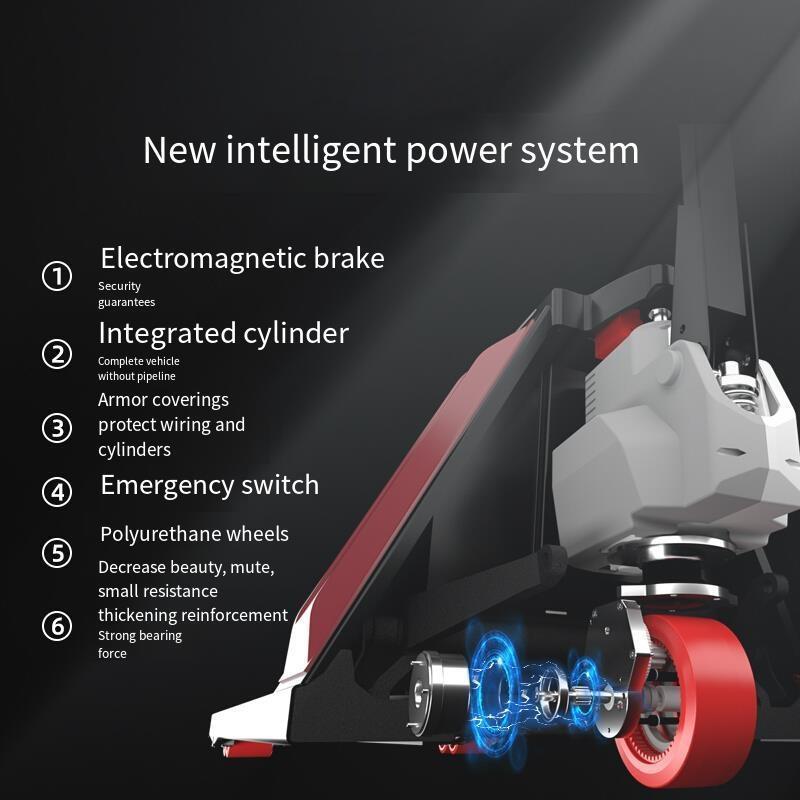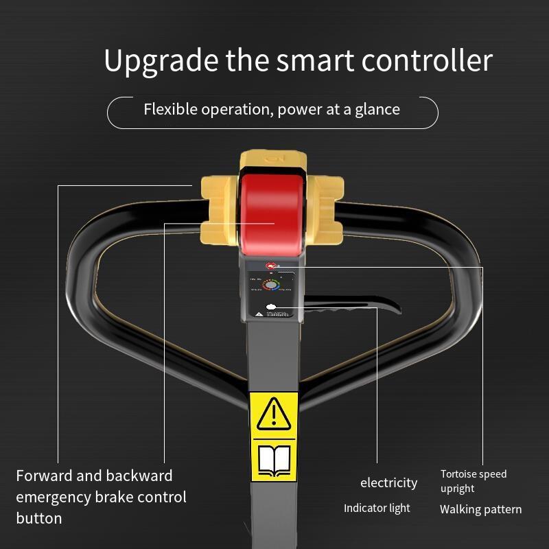 This is a fully electrical hydraulic pallet truck. It utilizes lithium battery which has a high capacity. Due to the lithium battery, the power of this machine is strong, you can move it as you want. At the same time, it is convenient to change the battery. The steel this machine uses is very eminent and is thickened. With this thickened steel, this machine can bear heavy items. And, this pallet truck has intelligent warning system, the machine will slow down at low power and give you a warning to charge.
