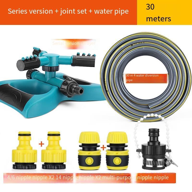 Garden Sprinkler 360 Degree Automatic Rotation Sprinkler Lawn Watering Sprinkler Roof Cooling Automatic Sprinkler Garden Flower Watering Artifact Irrigation Sprinkler Series Version + Joint Set + 30 M 4 Pipe