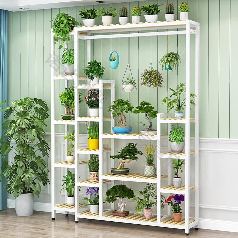 Green Plant Rack Flower Rack Iron Simple Flower Rack Flower Rack Green Rose Pot Rack Black Rack + Carbonized Wood 148*30*205