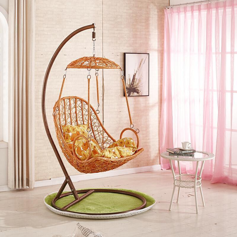 Hall Balcony Hanging Basket Rattan Chair Single Straw Hat Swing Cradle Chair Lazy Leisure Courtyard Chair Pink