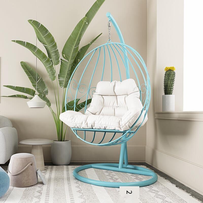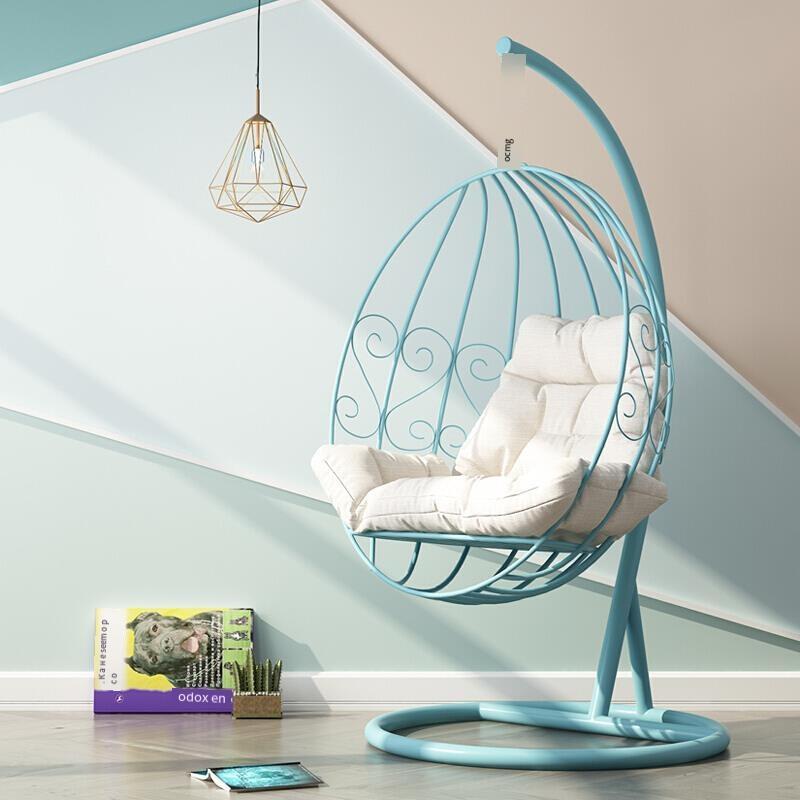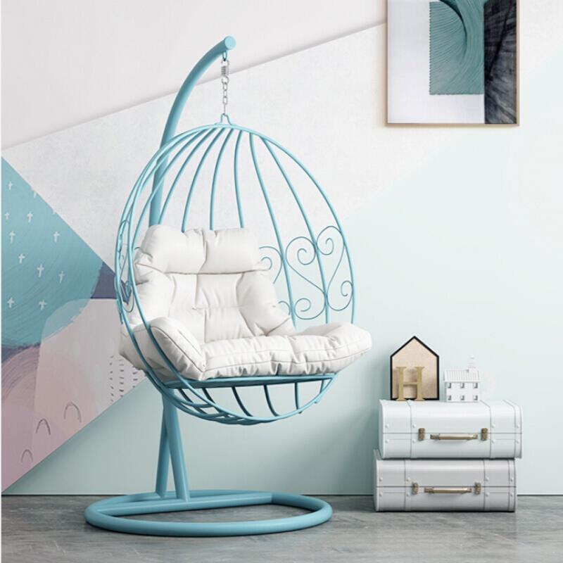 Hanging Basket Hanging Chair Family Iron Swing Indoor Balcony Outdoor Net Red Bird's Nest Lazy Cradle Chair Hanging Bed Lake Blue