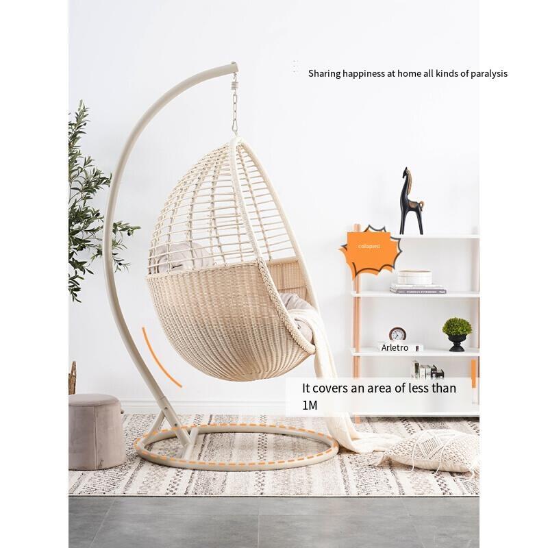 Hanging Basket Rattan Chair Household Lazy Hammock Indoor Balcony Leisure Hanging Basket Chair Bird's Nest Hanging Chair Bamboo Basket White