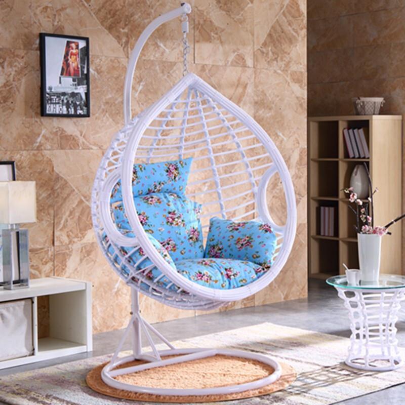 Hanging Basket Rattan Chair Bird's Nest Chair Rocking Chair Hanging Blue Swing Double Upgrade Coffee Armrest Thick Support [with Cushion]