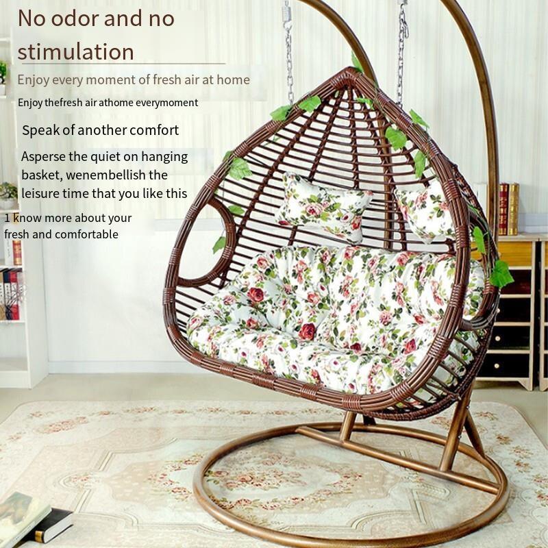 Hanging Basket Rattan Chair Double Household Basket Rattan Indoor Swing Balcony Bassinet Bird's Nest Hammock Lazy Orchid Drop Pole Coffee Fine Rattan